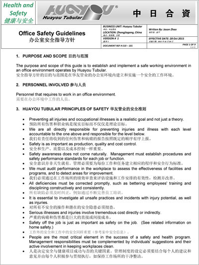 华友管业健康与安全介绍