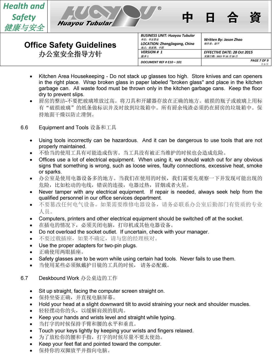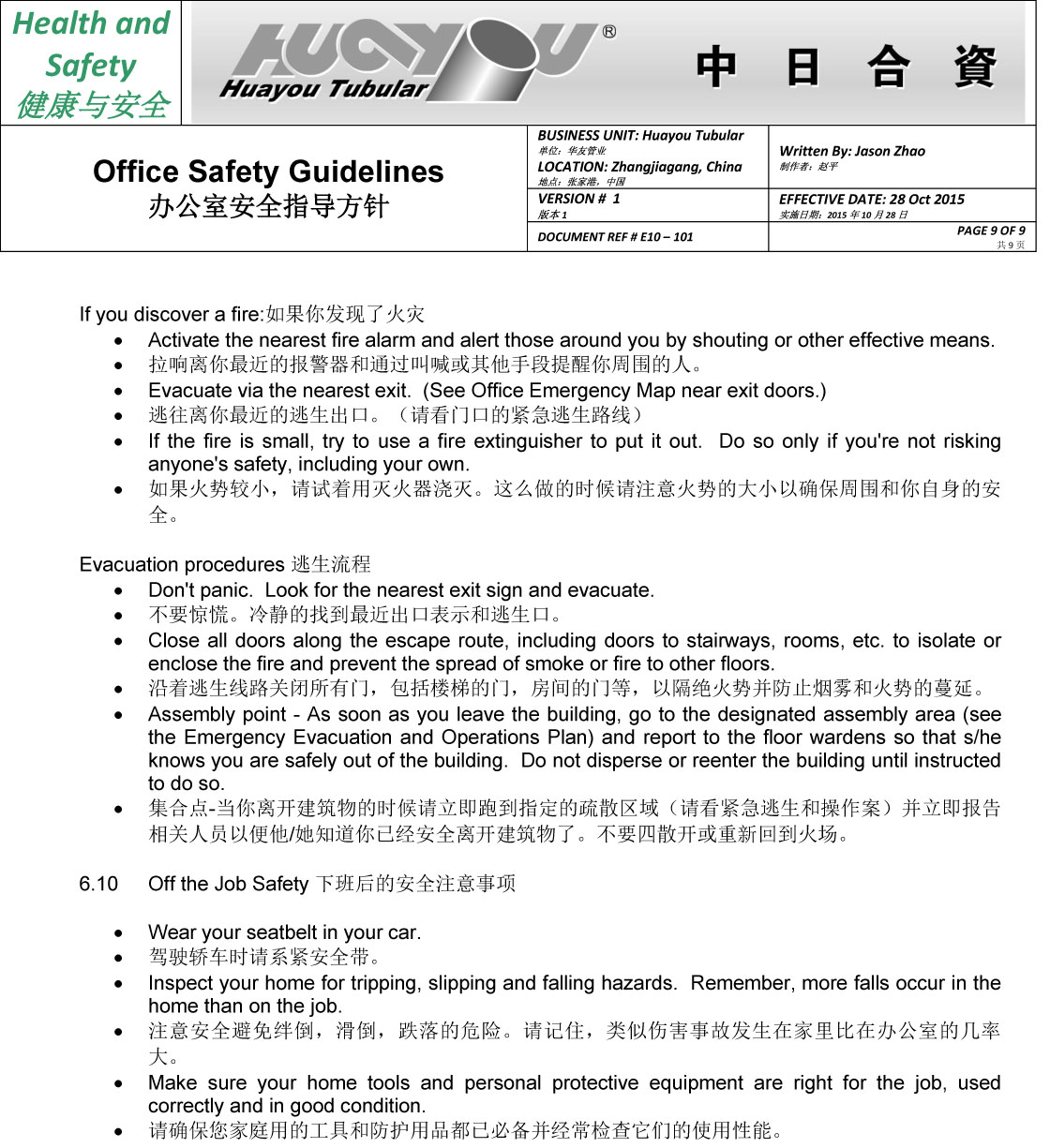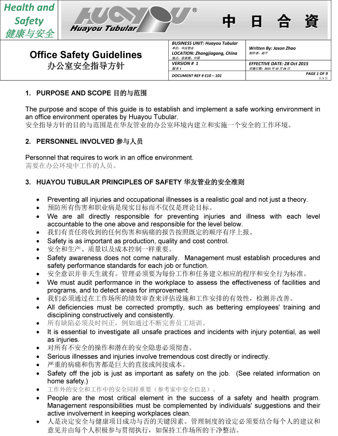 华友办公室安全指导方针